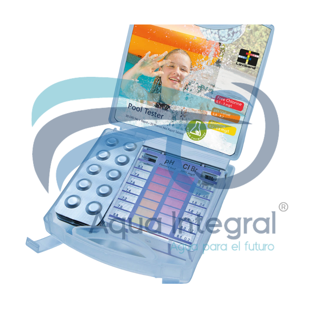 Incluye: reactivos en tableta, cubeta de muestra, escala de color, manual de uso